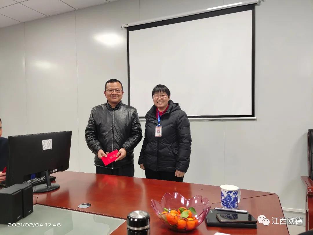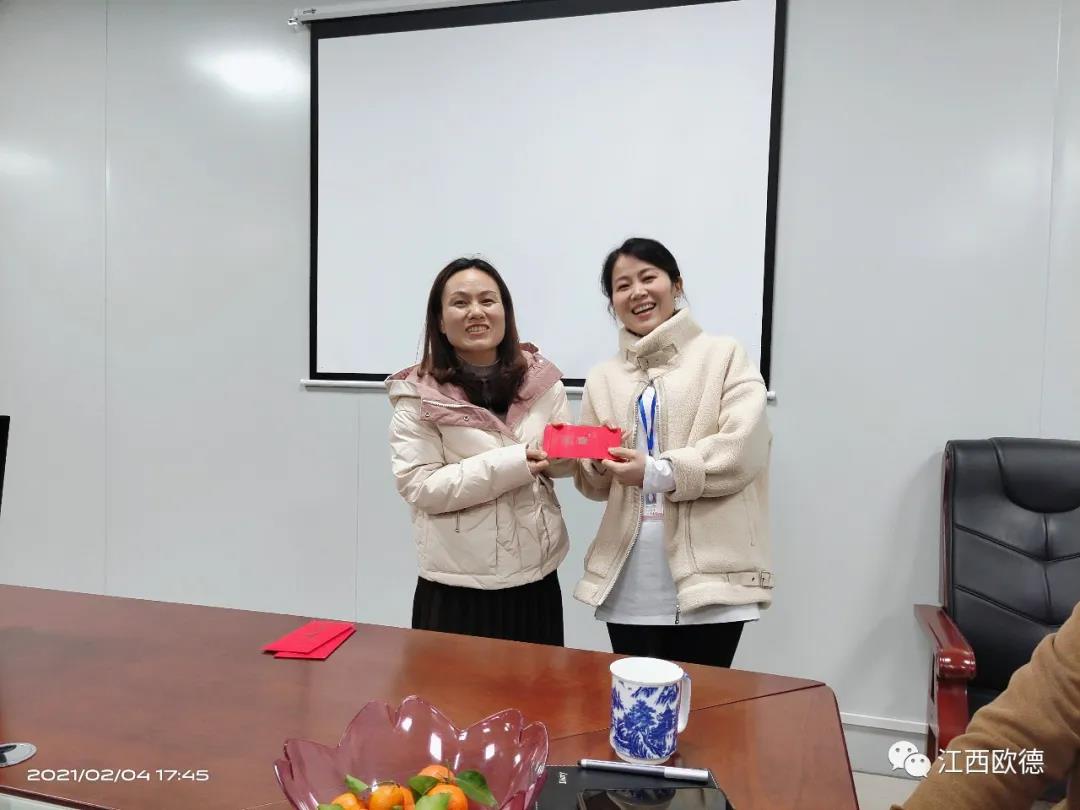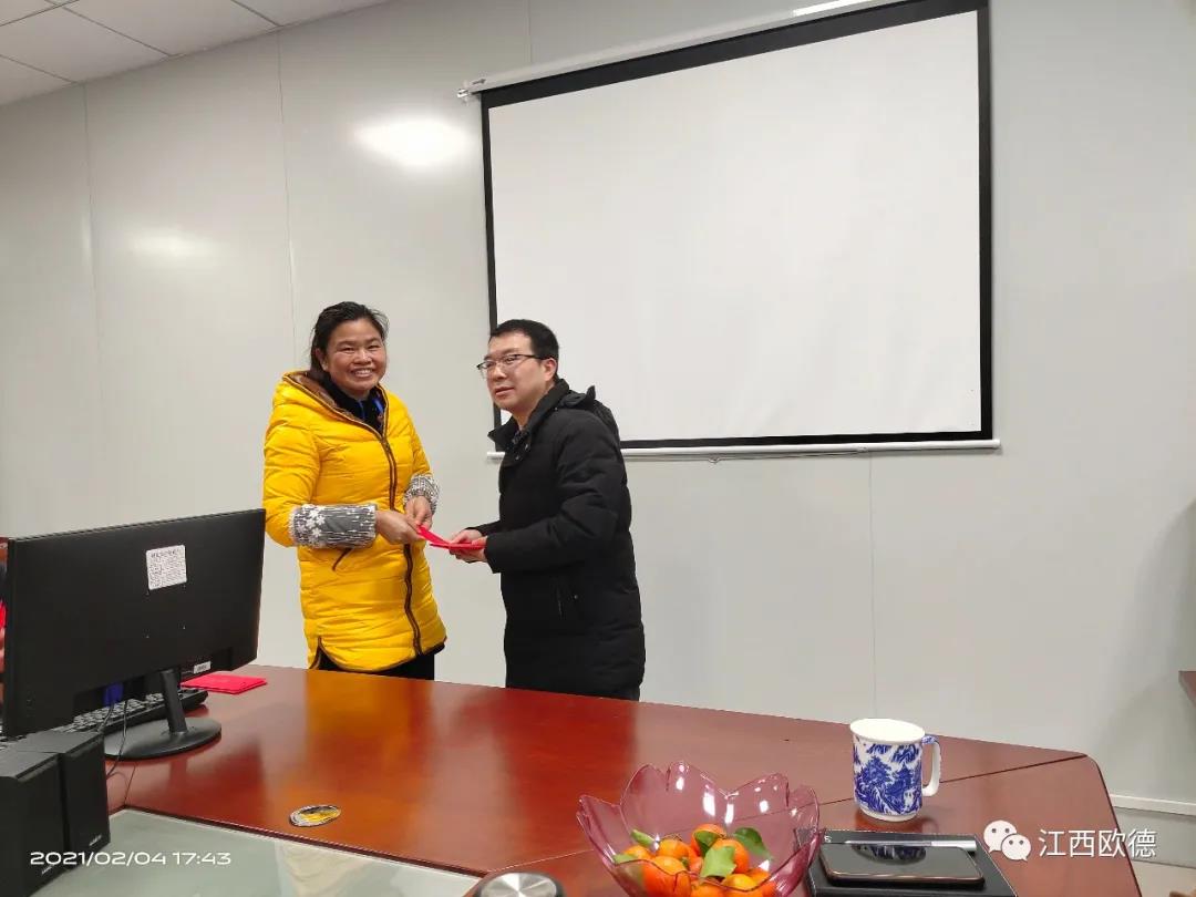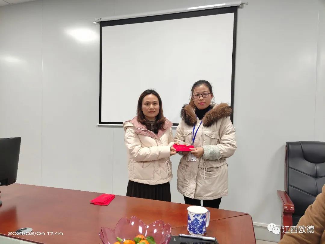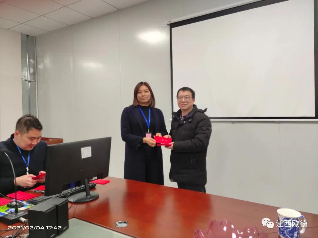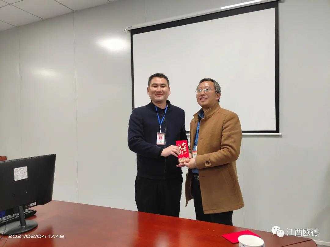 緊接著是進入會議的高潮,頒獎典禮。江西歐德醫(yī)療器材有限公司一直秉承愛國、愛民、誠信、創(chuàng)新、共享、感恩的價值觀。陳友平董事長對歐德醫(yī)療2020年所有為公司奮力拼搏的員工給予感恩和肯定,頒發(fā)了年終大獎!
