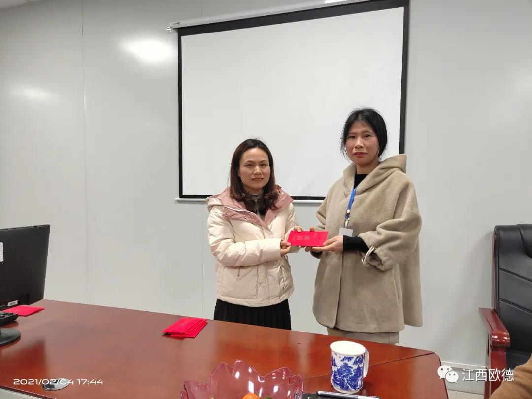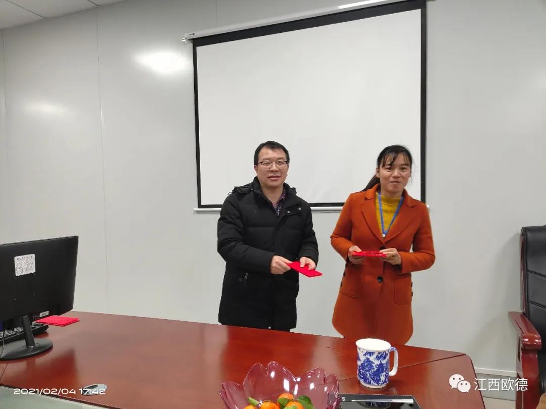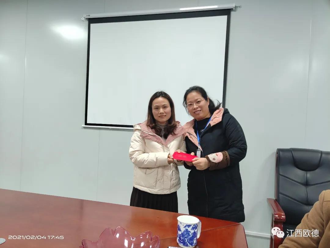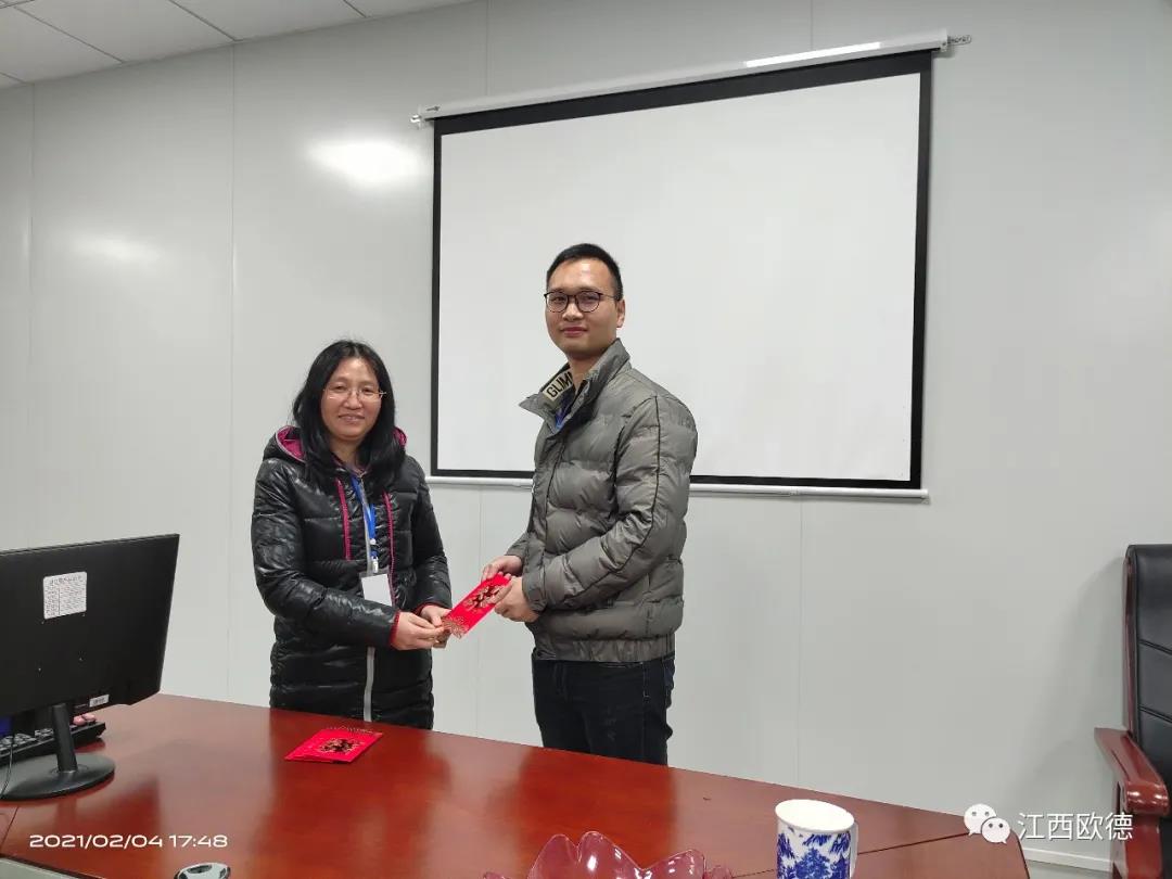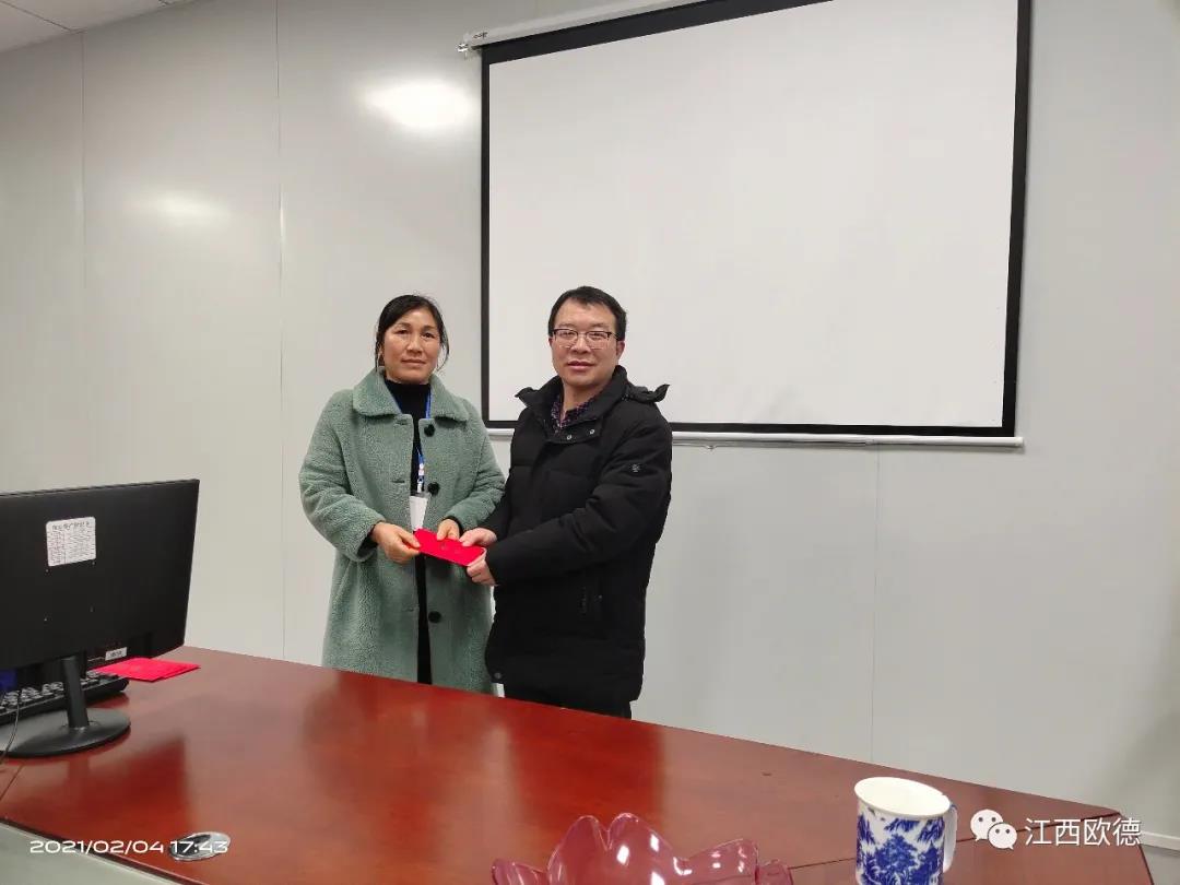 緊接著是進入會議的高潮,頒獎典禮。江西歐德醫(yī)療器材有限公司一直秉承愛國、愛民、誠信、創(chuàng)新、共享、感恩的價值觀。陳友平董事長對歐德醫(yī)療2020年所有為公司奮力拼搏的員工給予感恩和肯定,頒發(fā)了年終大獎!