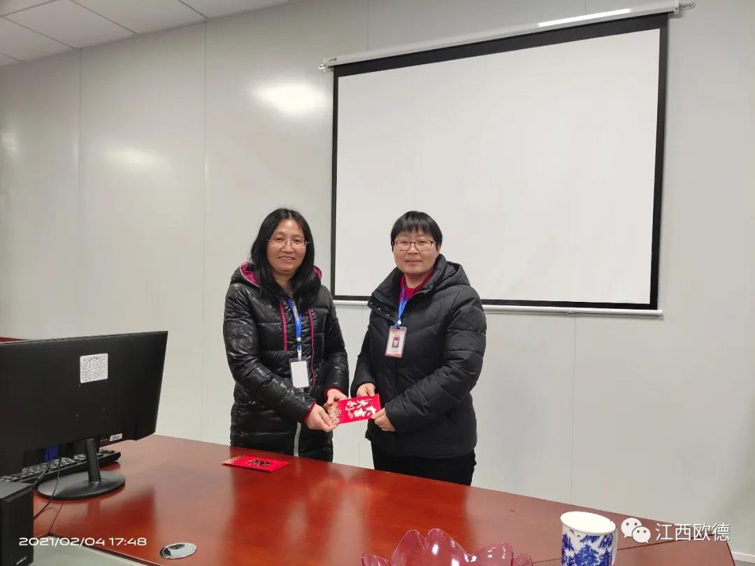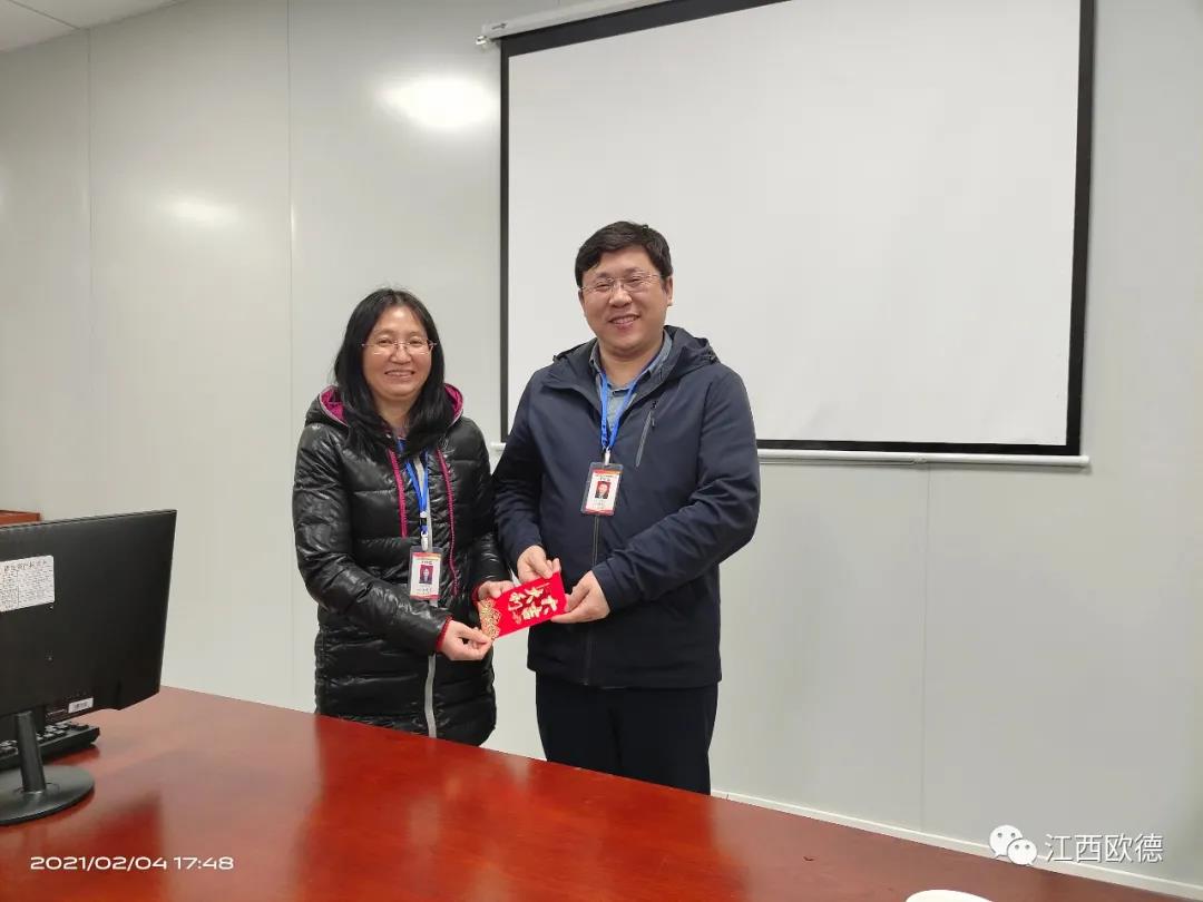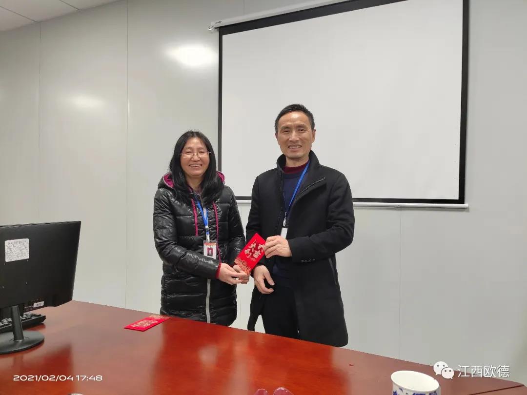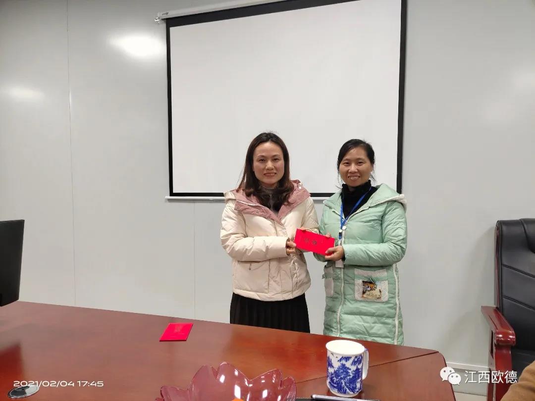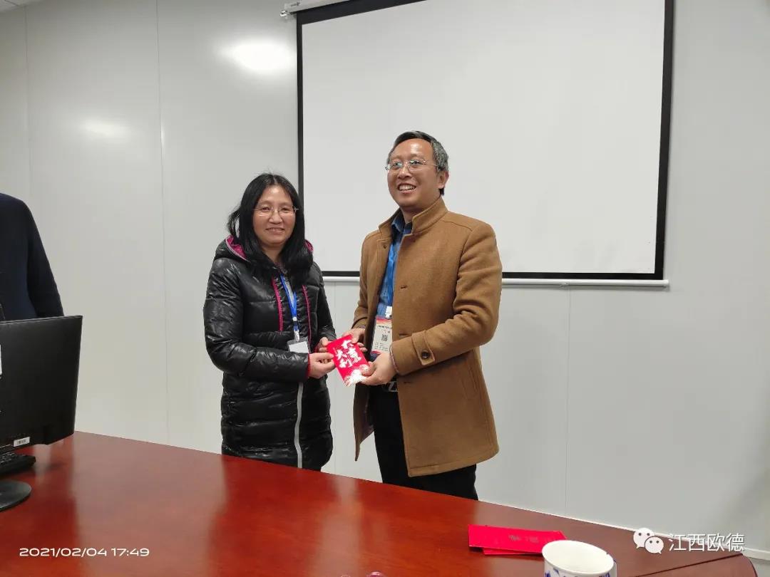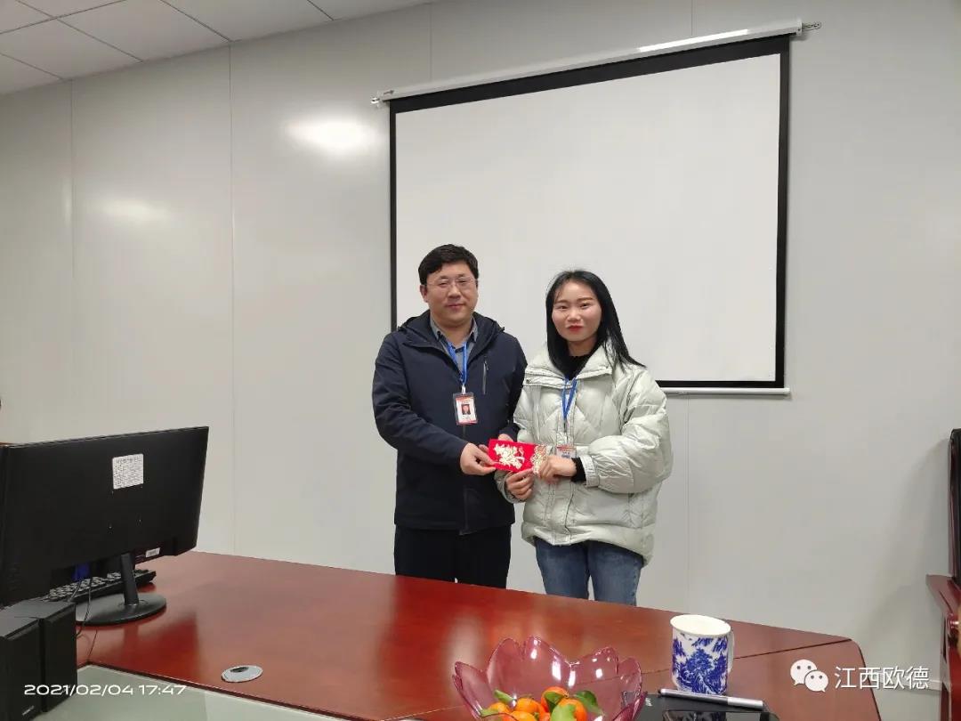 緊接著是進入會議的高潮,頒獎典禮。江西歐德醫(yī)療器材有限公司一直秉承愛國、愛民、誠信、創(chuàng)新、共享、感恩的價值觀。陳友平董事長對歐德醫(yī)療2020年所有為公司奮力拼搏的員工給予感恩和肯定,頒發(fā)了年終大獎!