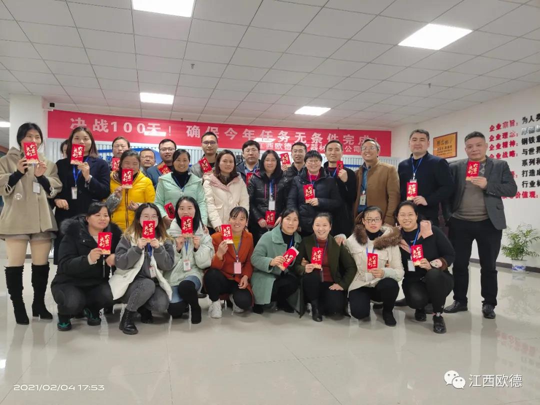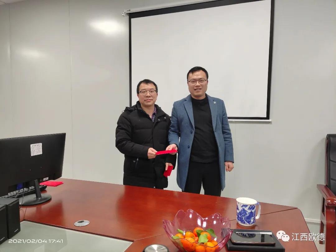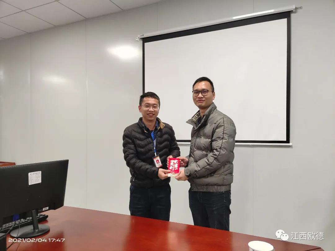 江西歐德醫(yī)療器材有限公司于2月4日下午13點整在會議室隆重召開了2020年年會暨頒獎典禮,出席本次會議的有歐德醫(yī)療董事長陳友平總經(jīng)理胡偉全體員工。