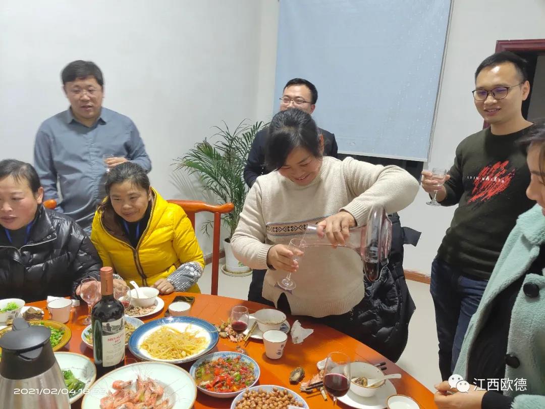 會議結(jié)束后,歐德家人歡聚一堂,共同舉杯、共享晚宴,迎接2021新一年的美好未來!晚宴現(xiàn)場氣氛活躍,佳肴豐盛可口,美酒沁人心脾。
